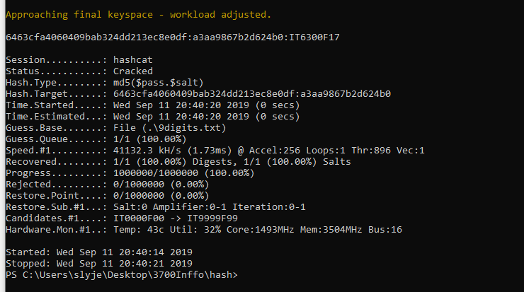 PS C:\Users\slyje\Desktop\3700Inffo\hash> ./hashcat64 -m 10 -a 0 6463CFA4060409BAB324DD213EC8E0DF:a3aa9867b2d624b0 .\9digits.txt -O