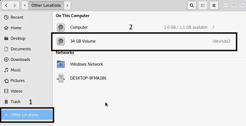 - Click on the Places and the menu bar will open click on Computer. The file manager will open.