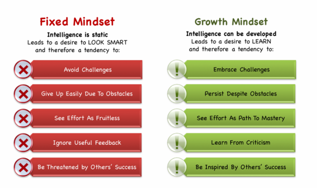 The growth mindset emphasizes the fact that we can all change, grow and progress through efforts, application and experience.