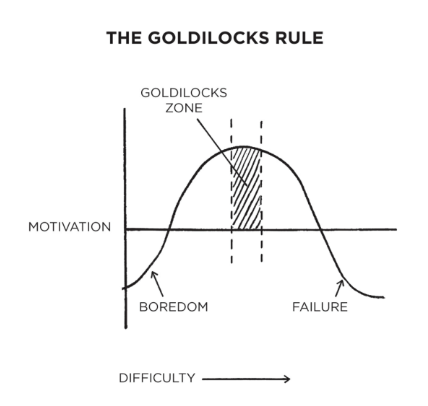 “The Goldilocks Rule states that humans experience peak motivation when working on tasks that are right on the edge of their current abilities.”