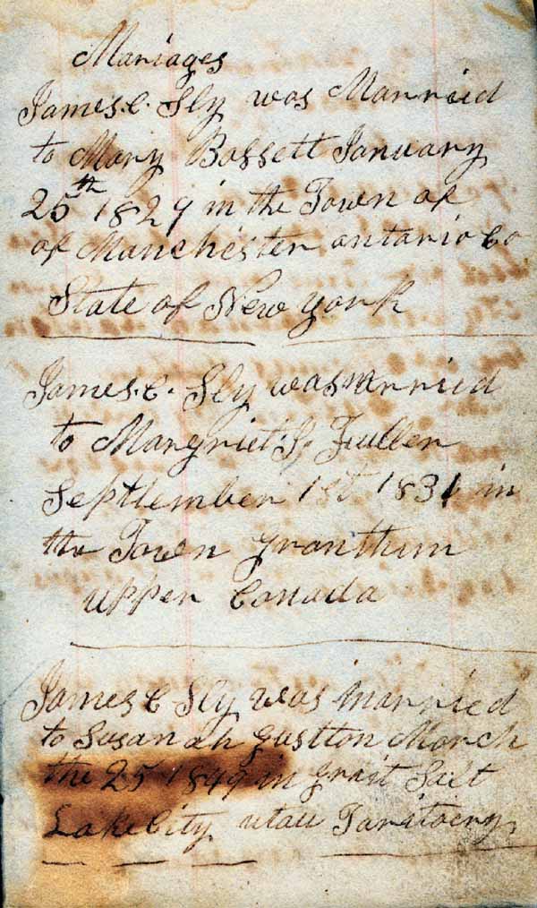 James C. Sly was married to Mary Bassett January 25th 1829 in the Town of Manchester, Ontario Co., State of New York