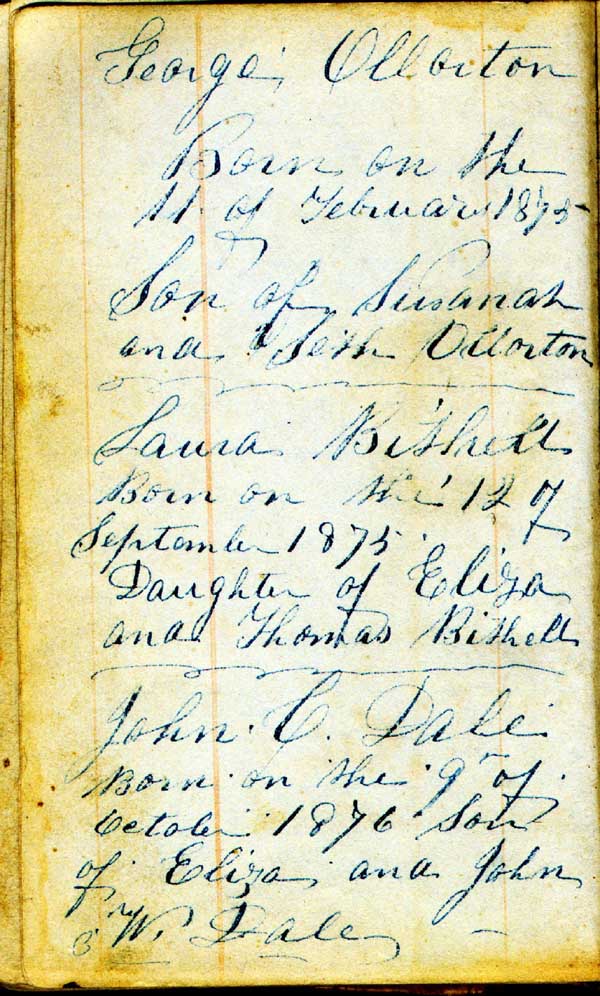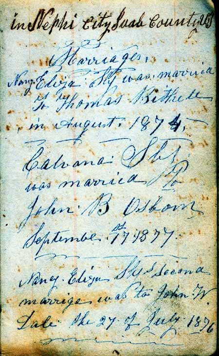 Deaths Died on the 18th of February 1875 George Son of Susannah and Seth Ollerton Died in Levan, Juab Co, UT Died on the 15th of October 1876 Eliza (Nancy Elizabeth Sly) Dale at Ophir City Utah Age 19 years