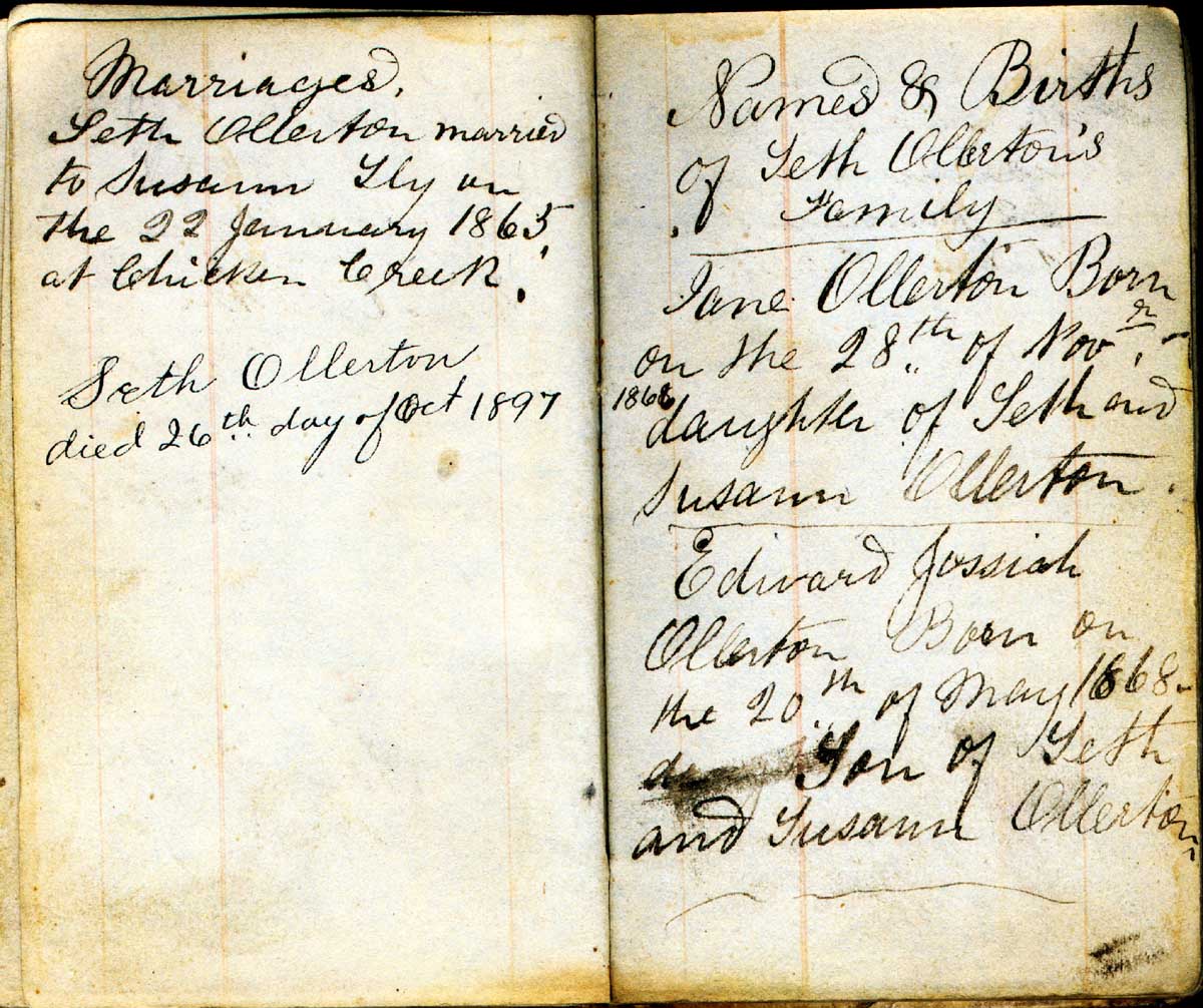 Seth Ollerton married to Susannah Sly the 22 January 1865 at Chicken Creek