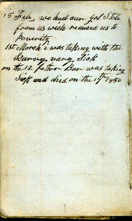 On the 12 father Bun was taken sick and died on the 17th 1850
